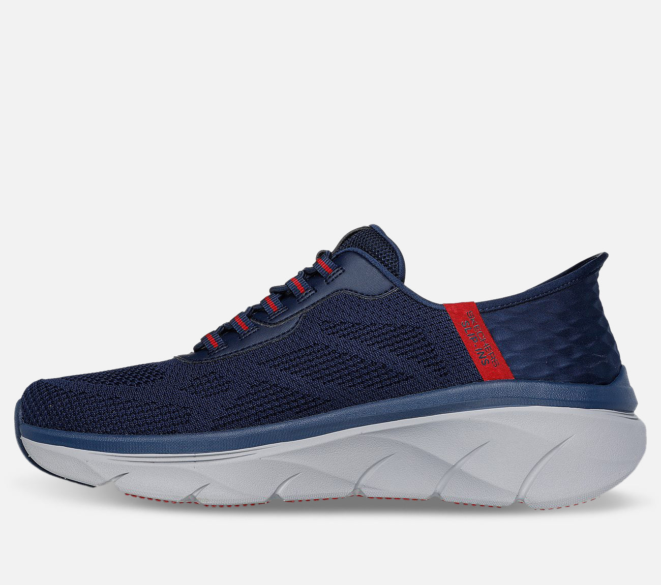 Overdelen er fremstillet i blødt strik kombineret med syntetiske materialer og elastikbånd, som giver en fleksibel og tilpasset pasform. Den rummelige Relaxed Fit®-konstruktion giver ekstra plads ved tå og forfod, hvilket øger komforten – især på længere gåture.